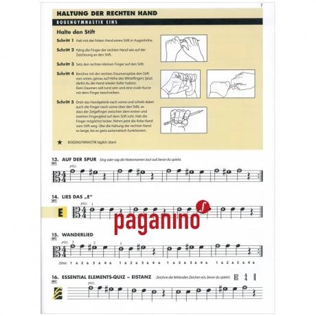 liefert Essential Elements für Streicher über das ganze Buch verteilt