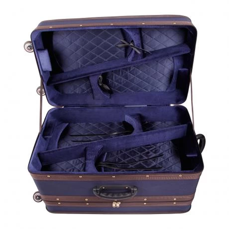 - Water-repellent Cordura nylon cover in dark blue with brown accents