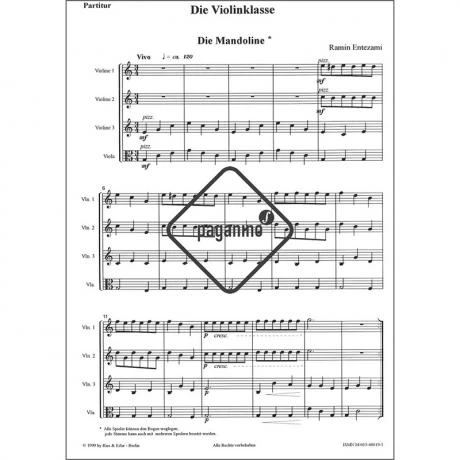Vierstimmige Übungs- und Vortragsstücke für 3 Violinen und Viola (1. Lage), Partitur und Stimmen.