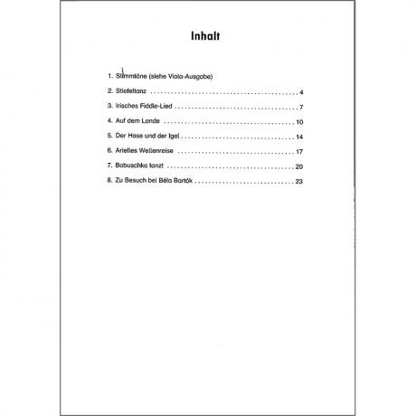 Inhalt:Stiefeltanz Irisches Fiddle-LiedAuf dem LandeDer Hase und der IgelArielles WellenreiseBabuschka tanztZu Besuch bei Béla Bartók