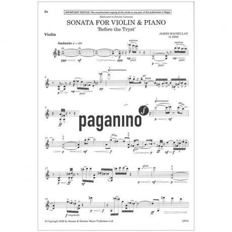 Die Violinsonate wurde von der Carnegie Hall in Auftrag gegeben und von Simone Lamsma und Robert Kulek uraufgeführt, den Widmungsträgern des Werkes. Das Stück erstreckt sich über einen einzigen, 15-minütigen Satz aus kontrastierenden Abschnitten. Abermals greift die Musik auf das Material der Scots Song zurück, und der Geist der Volksmusik taucht immer wieder an verschiedenen Punkten auf.